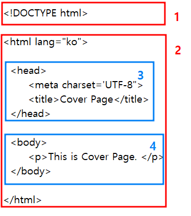 1 <!DOCTYPE html> : document 타입이 html 문서