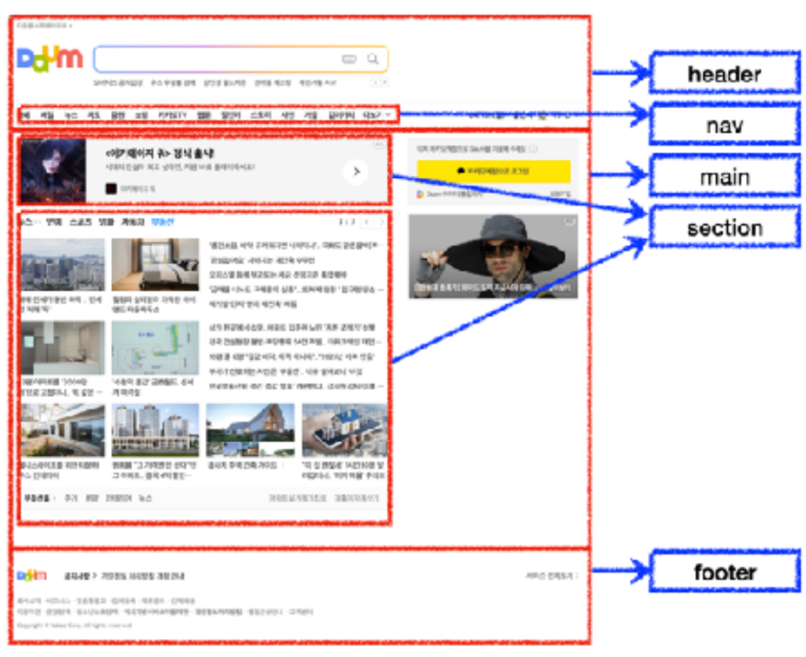 - 시멘틱 태그로 웹페이지의 전체적인 구조를 구성