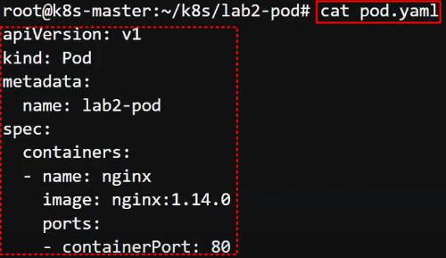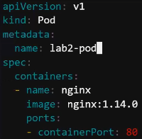 조건: pod name : lab2-pod container image : nginx container port : 80