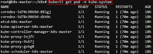 쿠버네티스를 배포하면 기본적으로 만들어지는 아키텍처를 구성하는 pod들을 확인할 수 있다.