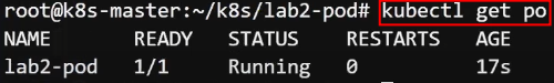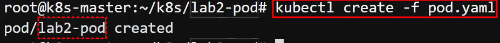 -> 2번에서 조회한 metadata의 name lab2-pod가 생성됨을 알 수 있다.