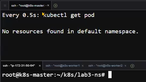 kubectl get ns kubectl get pod -n lab3-ns2