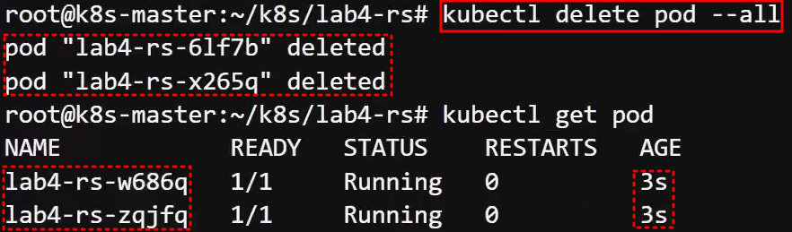 ->all은 모든 pod 삭제, 사진처럼 pod를 지정해서 삭제도 가능하다.