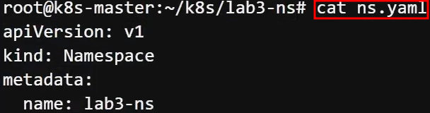 -n lab3 -ns가 없다면 default 공간에 생성, -n lab3 -ns을 써줌으로써 생성되는 타켓 설정
