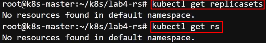 kubectl get replicaset kubectl get rs