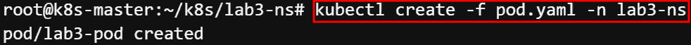 kubectl create -f pod.yaml -n lab3-ns