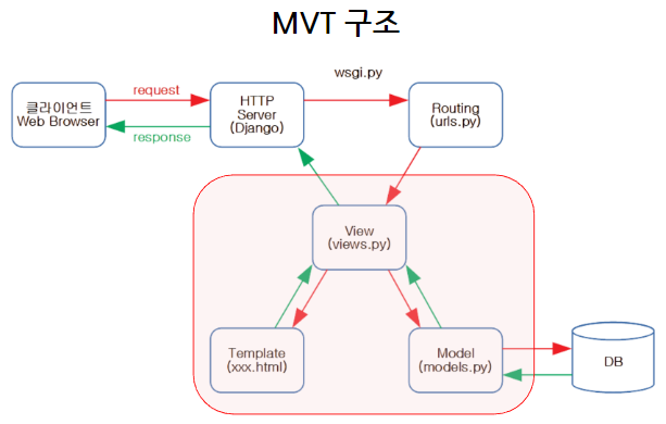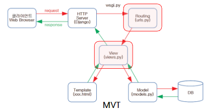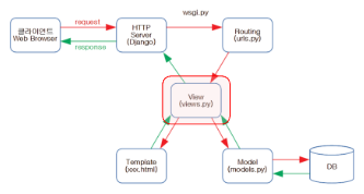 | 개념 | 웹 개발의 종합선물세트 웹 개발 프레임 워크 파이썬으로 만든 웹 프레임워크 빠르고 효율적인 웹 개발, MVT 패턴 |