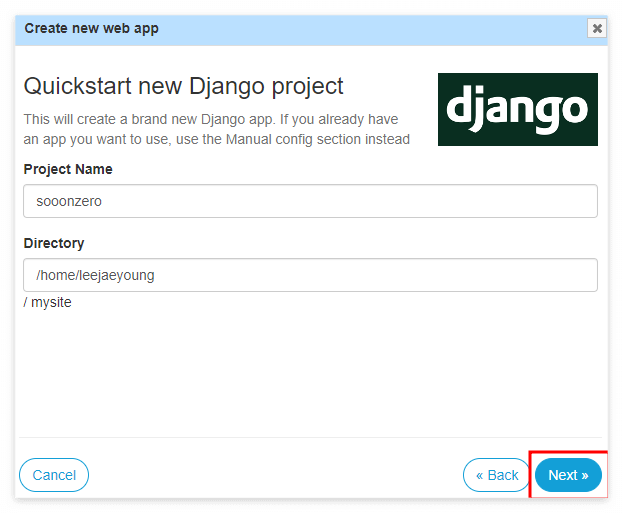| 개발 서버 실행 - django default port: 8000 - runserver 9000으로 입력하면 9000 port 사용 |