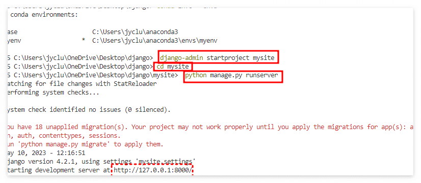 # myenv 이름으로 새로운 파이썬 가상환경 생성