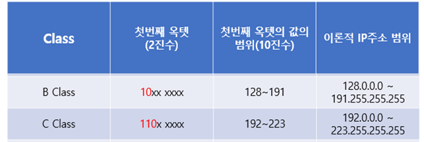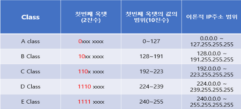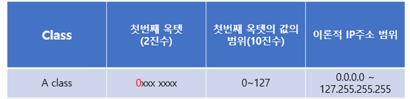 우리는 첫번째 옥텟값을 통해 A 클래스 임을 확인할 수 있으며