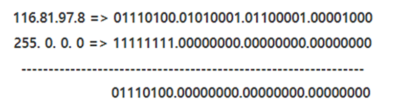 이를 통해 116.81.97.8 IP 주소를 통해 네트워크 주소는 116.0.0.0 이고 호스트 주소는 0.81.97.8 임을 알 수 있습니다.