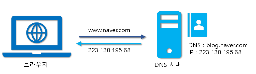 마지막으로 호스트의 정보를 받아 브라우저에 반환하고 해당 pc는 반환받은 ip 주소를 통해 blog.naver.com의 서버로 접속하게 됩니다.