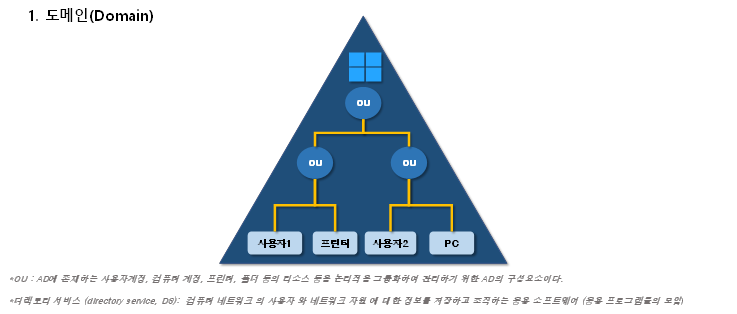 도메인은 관련된 사용자, 컴퓨터 및 기타 AD 객체로 구성되는 그룹입니다.