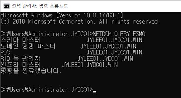 8. netdom query fsmo : 여러대의 DC가 있는 경우 Master 역할을 확인할 수 있습니다.