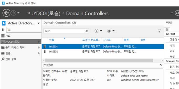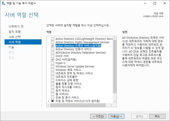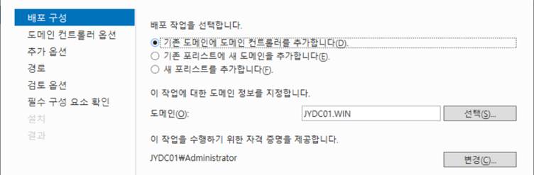 JY-DC02의 도메인 컨트롤러로 승격 과정입니다.