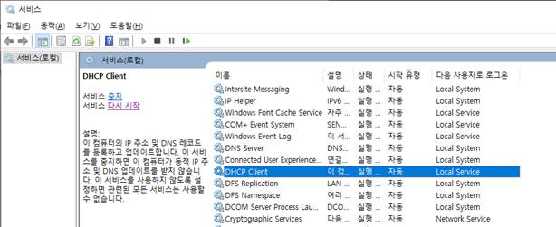 4. 서비스 : DNS Client, DNS Server Netlogon, DFS Replication이 자동으로 시작되고 있음을 확인할 수 있습니다.