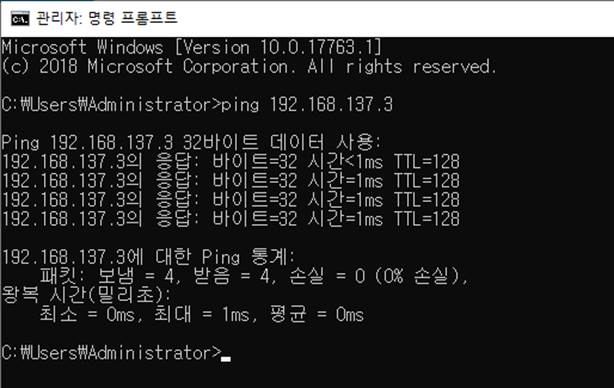 내부 스위치의 IP를 192.168.137.1 로 설정하였으며,