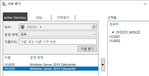 기본설정 DNS 서버는 JY-DC01로 설정해주었습니다..