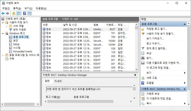 5. 서비스. 이벤트 로그 : AD관련 이벤트를 확인할 수 있습니다.