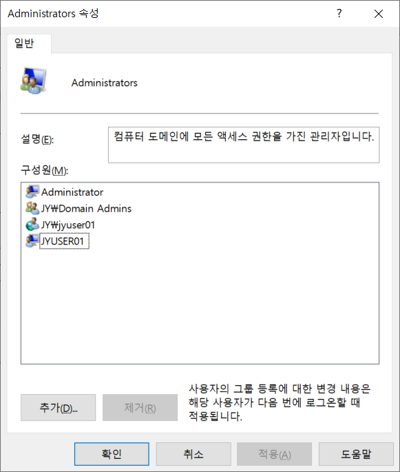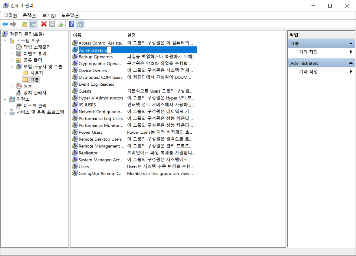 컴퓨터 관리 - 로컬 사용자 및 그룹 - 그룹 - Administrators