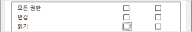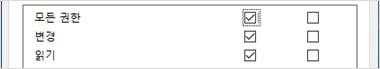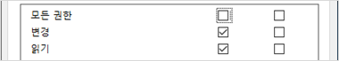 | 모든 권한 | 변경 권한 | 모든 권한 |
