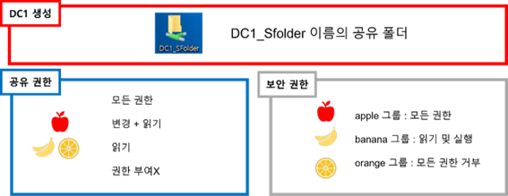 그룹 권한과 사용자 권한에 대한 공유 권한과 보안 권한을 동일하게 부여한다는 전제하에 실시했습니다.