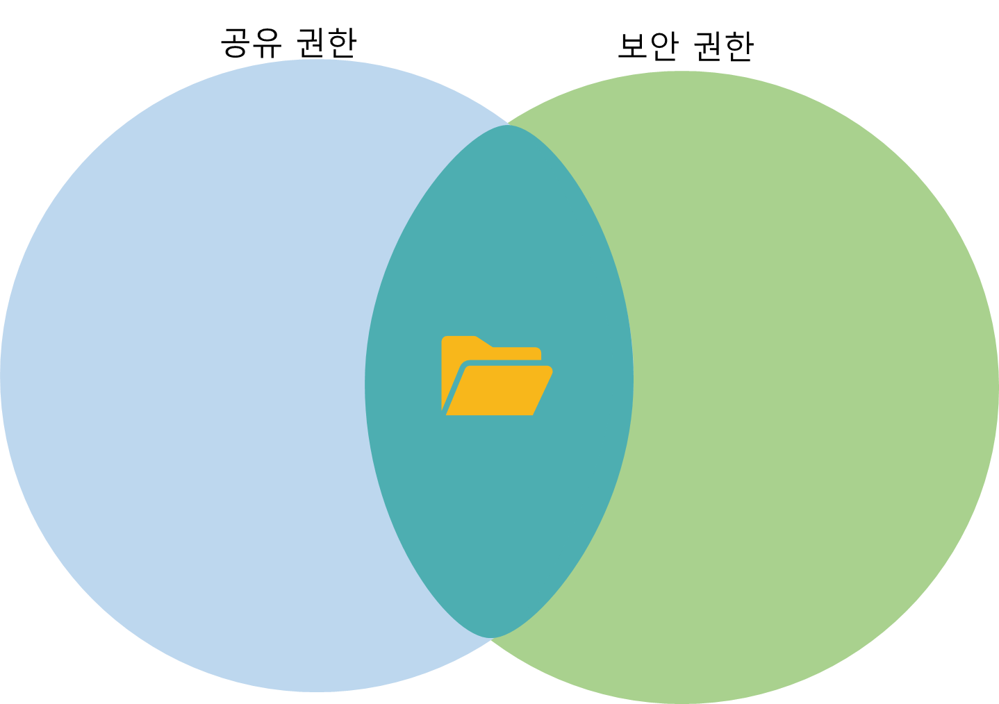 공유 권한과 보안 권한이 충돌이 일어날 시 & 으로 인해 가장 제한적인 권한이 적용됩니다.