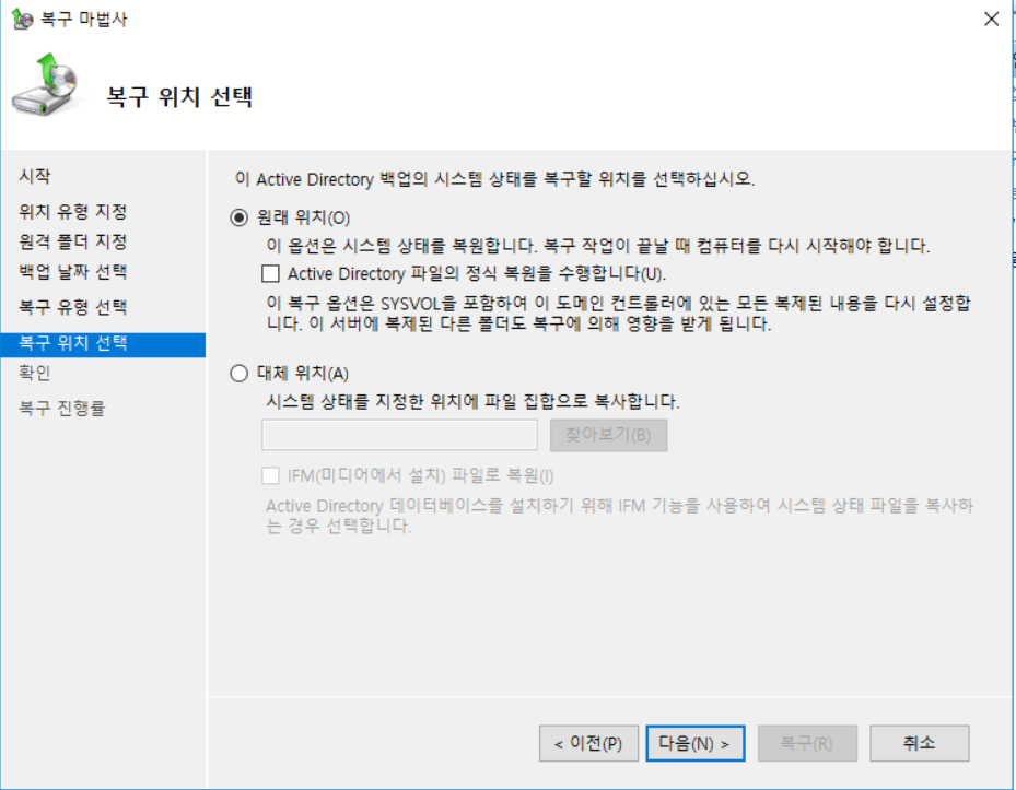 | Active Directory 데이터베이스 백업/복원 (0) | 2022.11.26 |