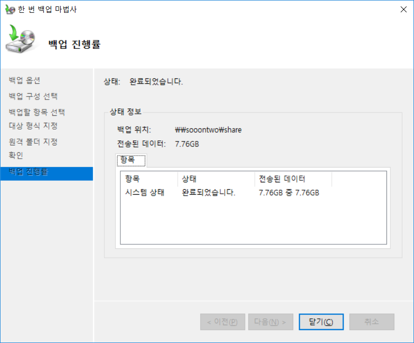 DC1 시스템 상태 DC2 \\sooontwo\share 에 백업