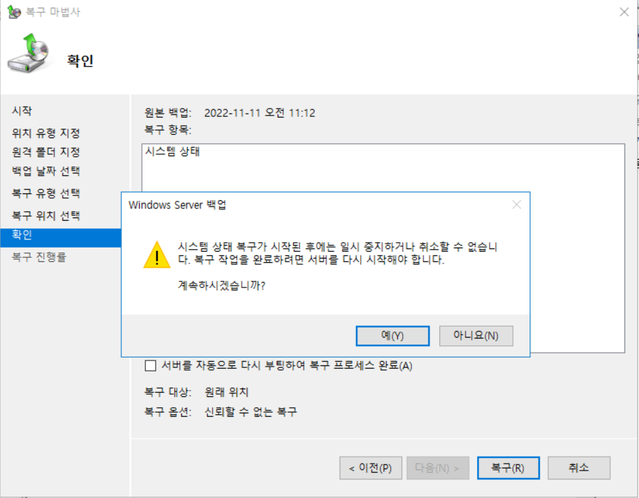 | Authoritative restore | 정식 복원, 도메인 컨트롤러를 특정 시점으로 복원하고 Active Directory의 개체를 복제 파트너와 관련하여 신뢰할 수 있는 개체로 표시합니다. |
