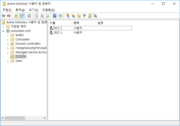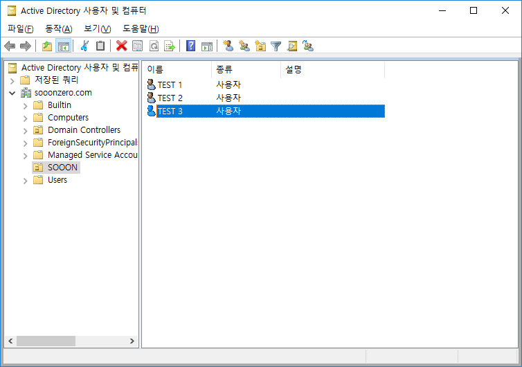 복구모드 해제 후 DC1 DC2에서 TEST1 복구된 것을 확인할 수 있다.