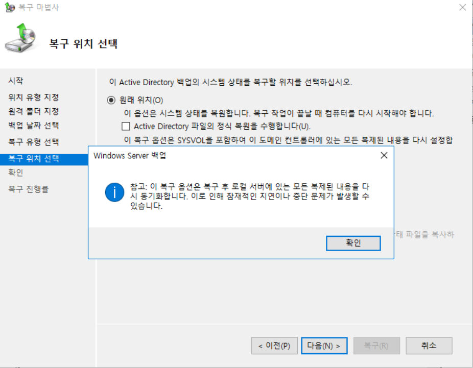 AD 복원을 하다보면 정식복원이 필요할 때가 있습니다.