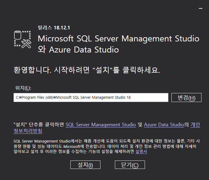 한국어 다운로드 링크 : https://aka.ms/ssmsfullsetup?clcid=0x412