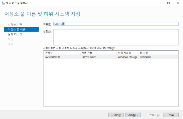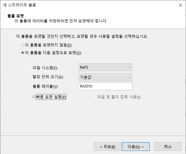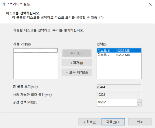 디스크 6 우클릭 - 새 스트라이프 볼륨