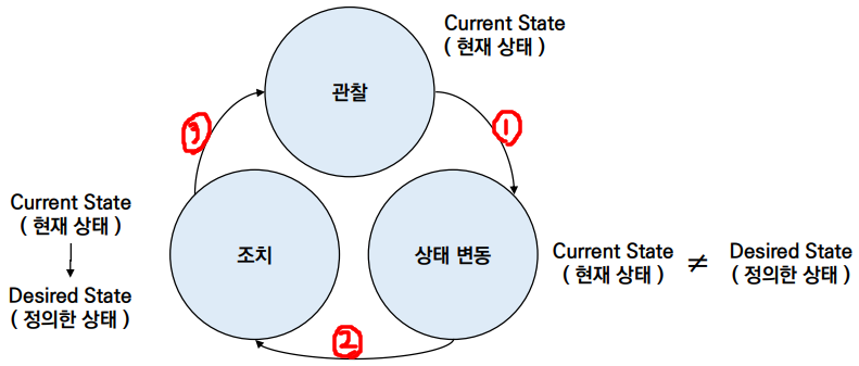 각 컨트롤러는 현재 상태를 정의된 상태에 같게 유지하려는 특징(Status == Spec)