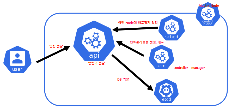 | Controller Managers | 클러스터의 상태를 조절 하는 컨트롤러들을 생성, 배포 |