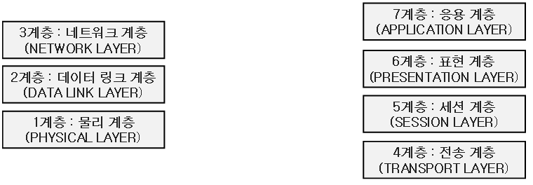- 하위계층(물리 > 데이터 링크 > 네트워크) > 상위계층 (전송 > 세션 > 표현 > 응용)