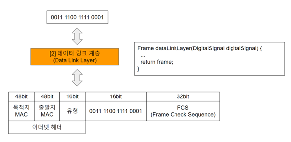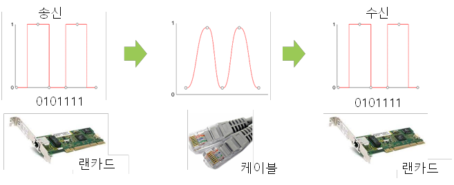- 디지털 신호를 받아서 이더넷 헤더와 트레일러가 추가하여 프레임을 만들어 줍니다.