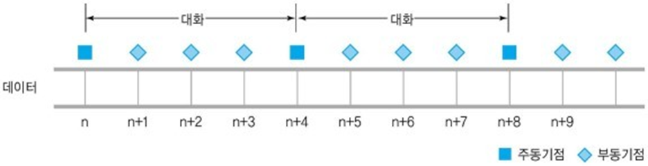 *대화 : 데이터전송과정, 시간 경과에 따른 순차적으로 동기점을 부여하여 신뢰성 보장