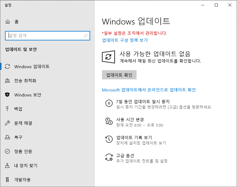 *일부 설정은 조직에서 관리합니다. 확인